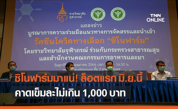วัคซีนชิโนฟาร์ม กรุงเทพธุรกิจ รพ.ลานนาเชียงใหม่ เปิดจอง ซิโนฟาร์ม ราคาประมาณ 1000 บาทต่อเข็ม ล่าสุดปิดจองแล้ว ด้านกรม สบส. วัคซีนซิโนฟาร์ม มีเจ้าของเป็นรัฐบาลจีน และเป็นหนึ่งในวัคซีนที่องค์การอนามัยโลก (who) ขึ้นทะเบียนให้สามารถใช้งานได้ในกรณีฉุกเฉิน (emergency use listing: กลุ่มซีพีได้ลงทุน 515 ล้านเหรียญสหรัฐ (ประมาณ 1.54 หมื่นล้านบาท) แลกกับการเข้าถือหุ้น 15% ในบริษัท ซิโนแวค ไลฟ์ ไซแอนซ์ ผู้ผลิตวัคซีน โคโรนาแวค. กลุ่มซีพีลงทุน 515 ล้านเหรียญสหรัฐเข้าถือหุ้น 15% ในบริษัท ซิโนแวค ไลฟ์ ไซแอนซ์ ผู้ผลิตวัคซีนโคโรนาแวค ของจีน ที่มีข้อตกลงส่งมอบให้ประเทศ 2. เผยความคืบหน้าวัคซีนซิโนฟาร์ม อยู่ในขั้นคำขอหลังยื่นเอกสารครบถ้วนแล้ว ยังมีวัคซีนอีก 2 ยี่ห้อ อยู่ระหว่างทยอยยื่นเอกสาร วันที่ 25.